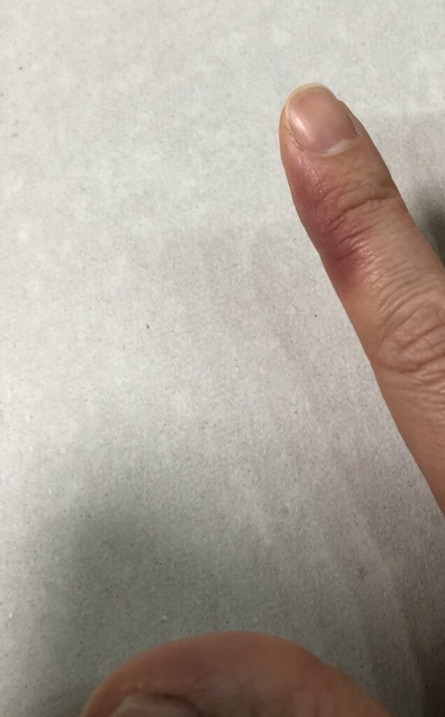 右手人差し指の第一関節 紫色になっている(当時の状態)